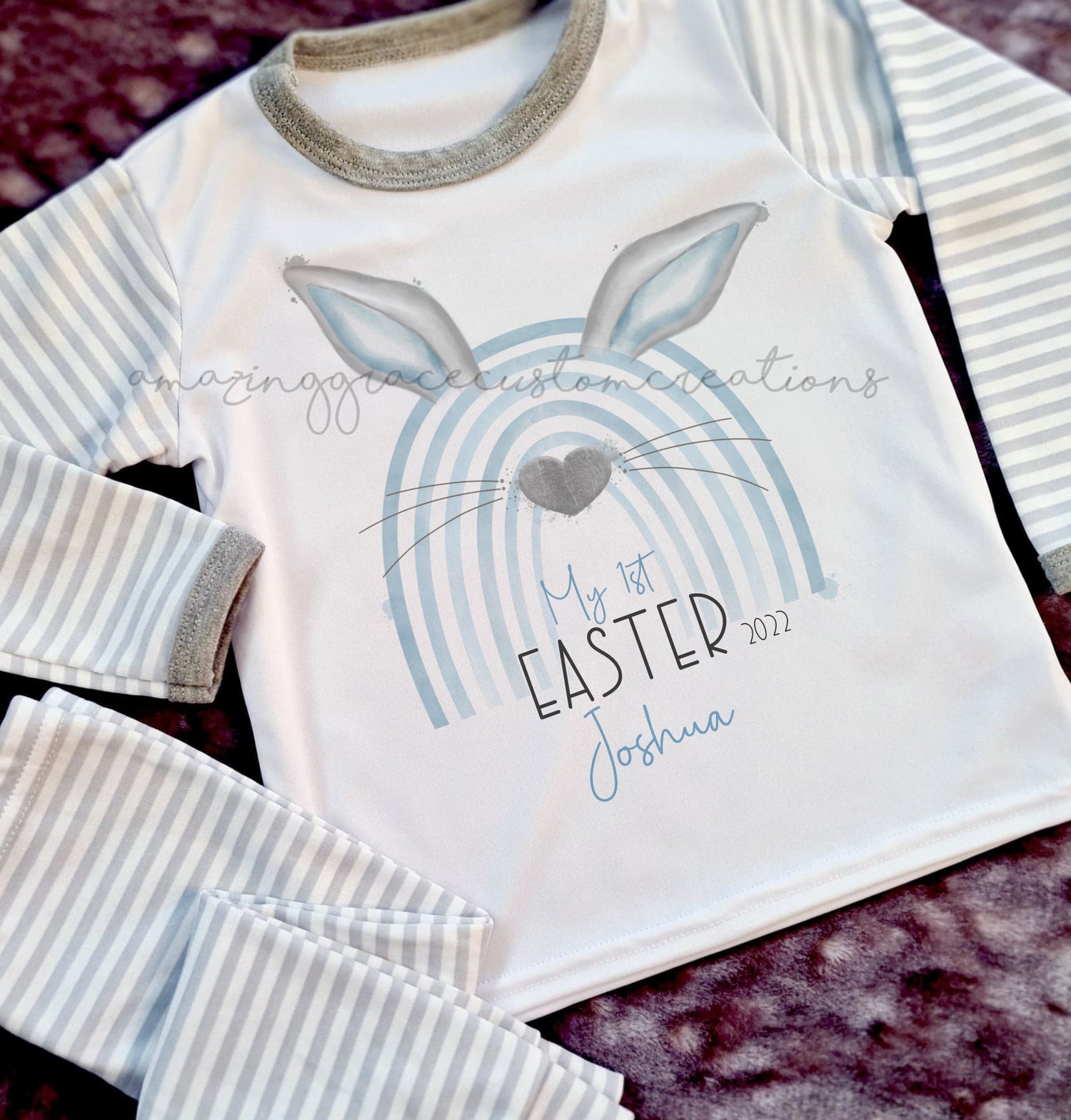 Gorgeous soft Pj's with Easter bunny design personalised with your child's name.