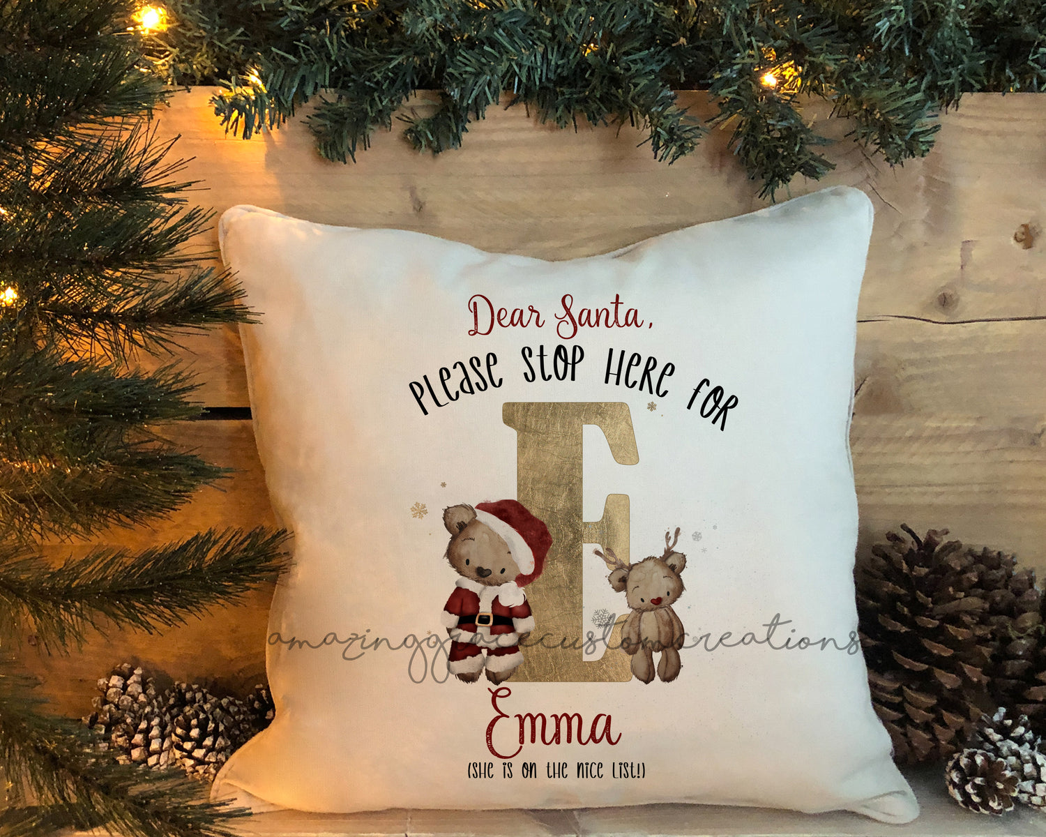 Christmas santa cushion PERSONALISED TEDDY INITIAL