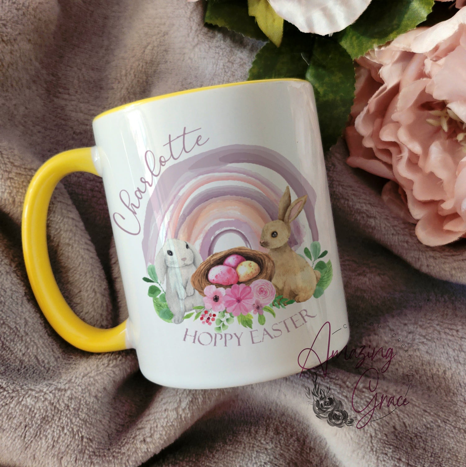 10oz Ceramic mug decorated with gorgeous Easter print & name