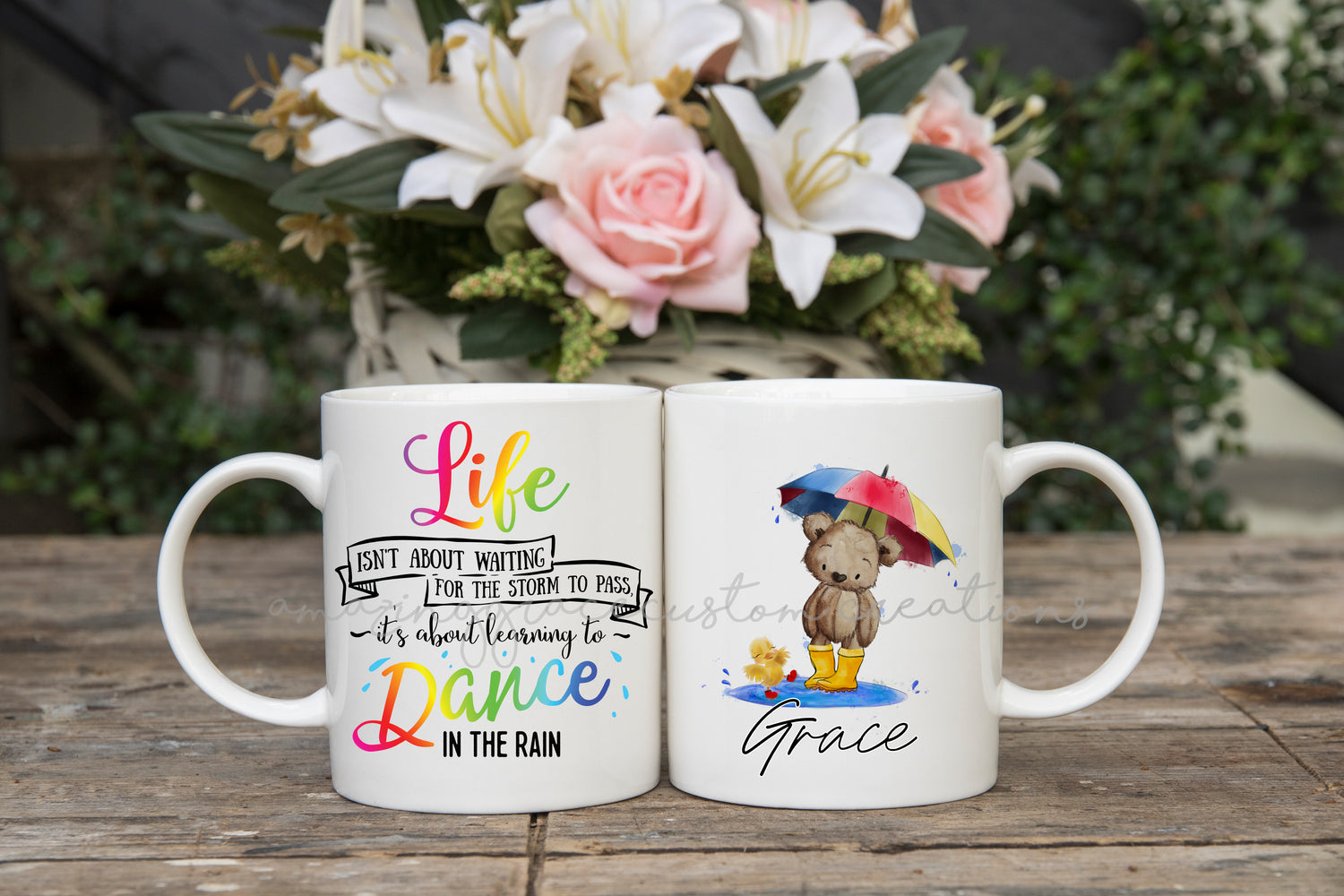 10oz Ceramic mug decorated with beautiful watercolour bear design with positive saying and personalised with name!