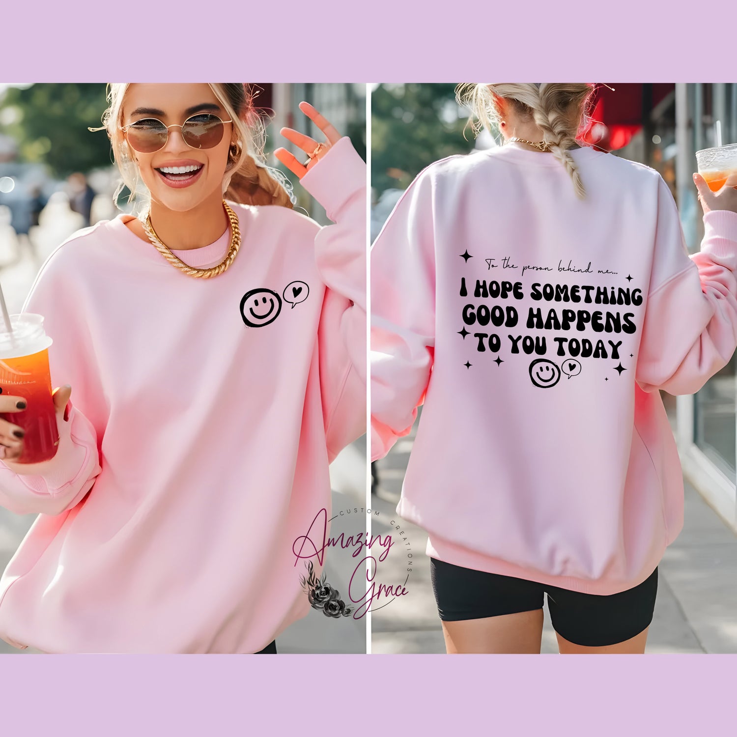 Dear person behind me 'I hope something good happens to you today’ custom print positivity hoodie/sweatshirt