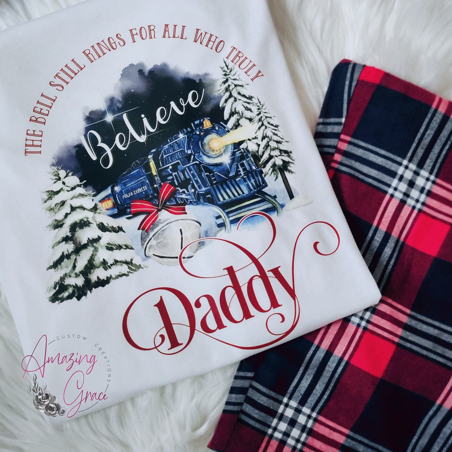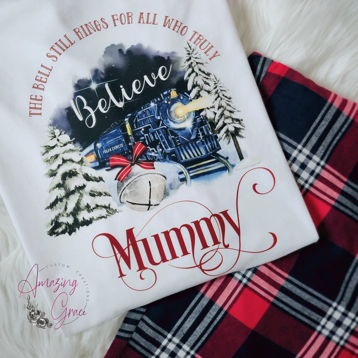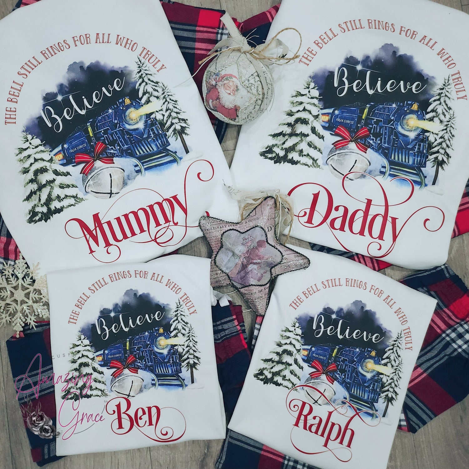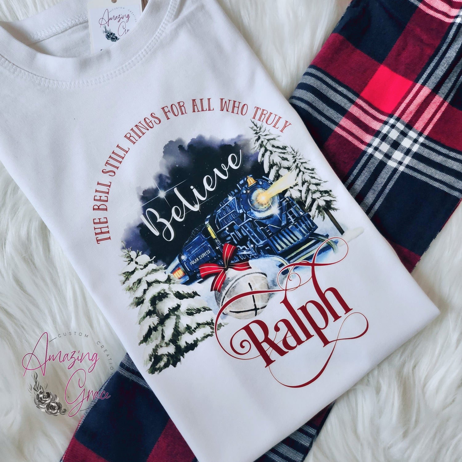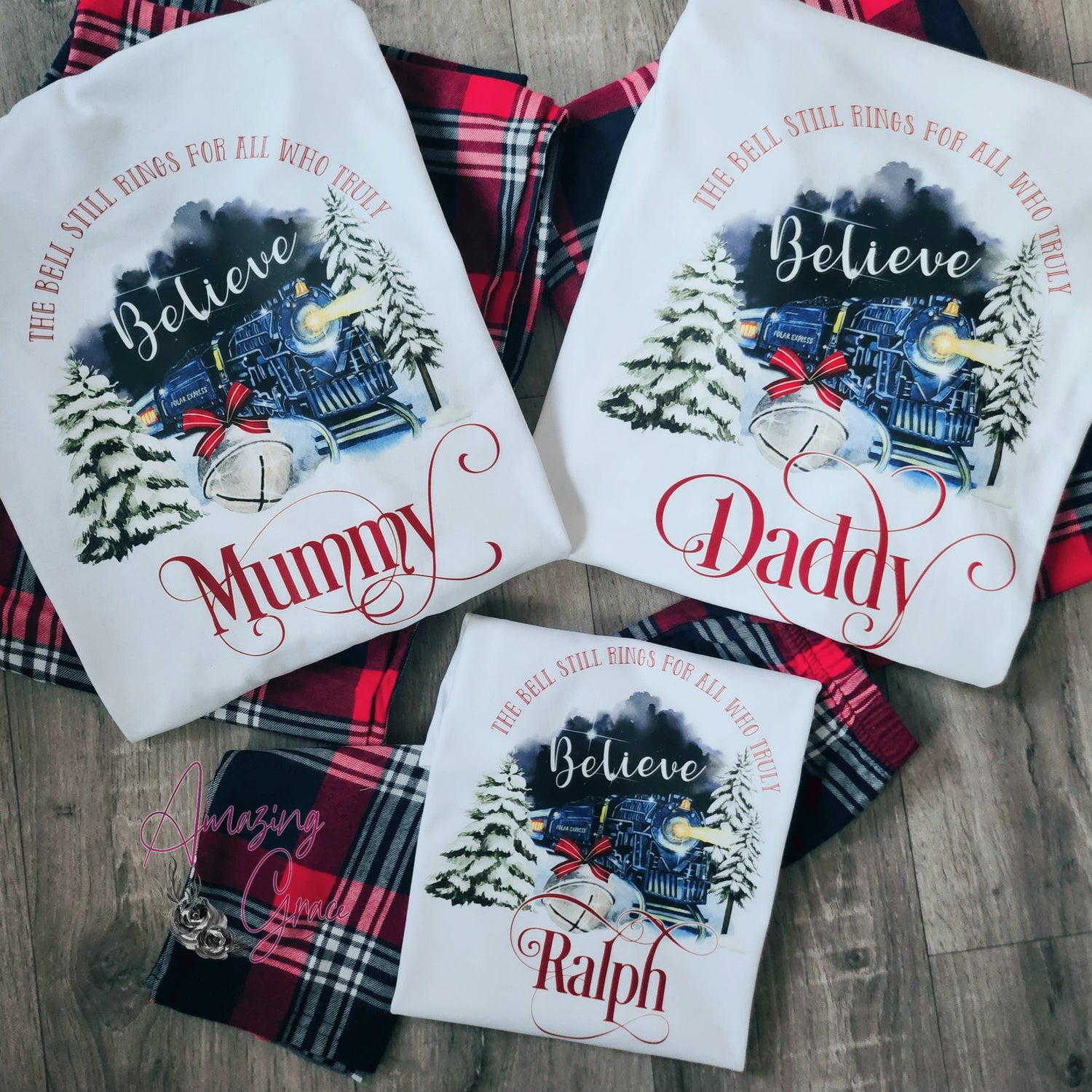 Family POLAR EXPRESS PJs personalised pyjamas - white/tartan