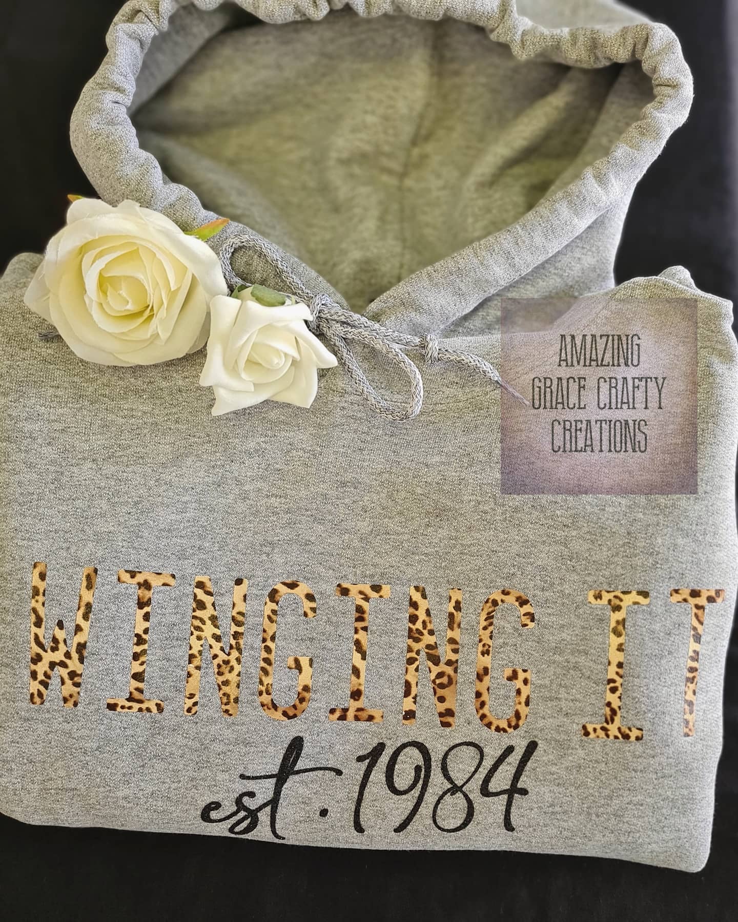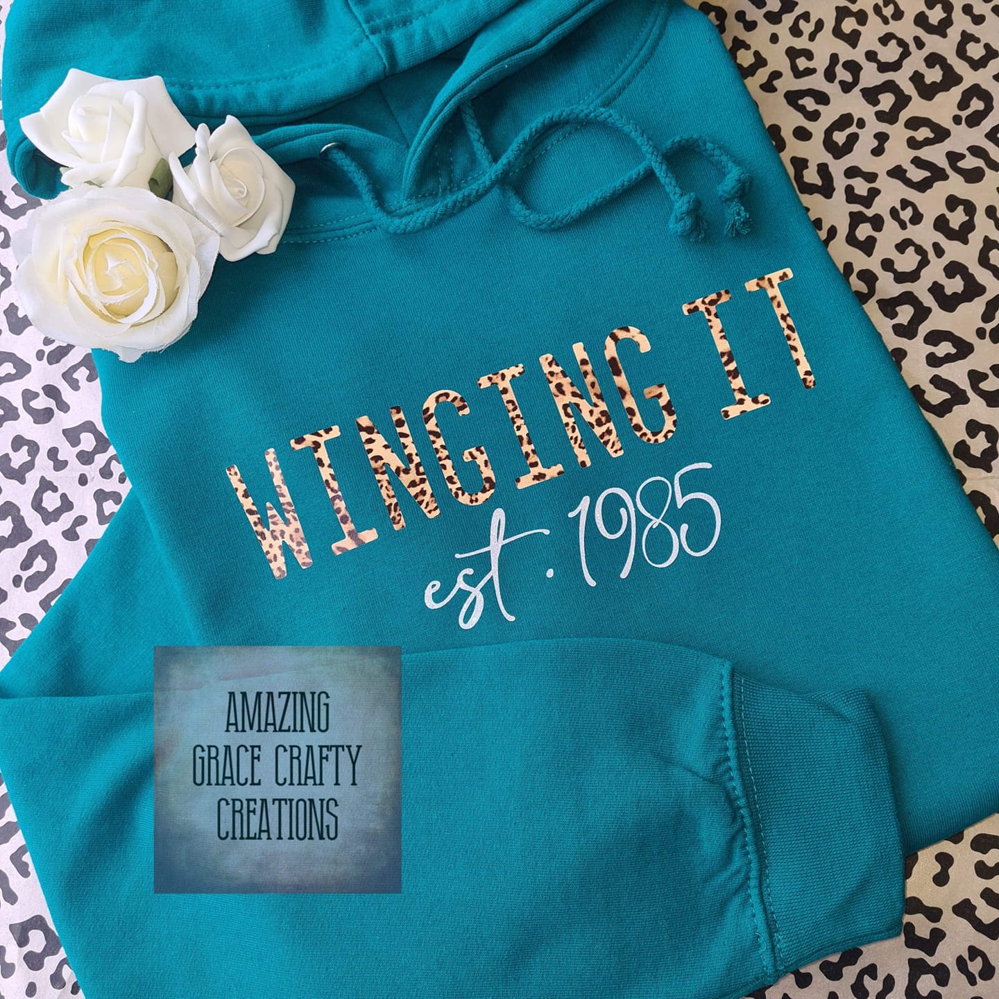 Minimalist style hoody, featuring slogan design. Unisex fit. year is your choice... are you winging it since start of motherhood? or just from year of birth!