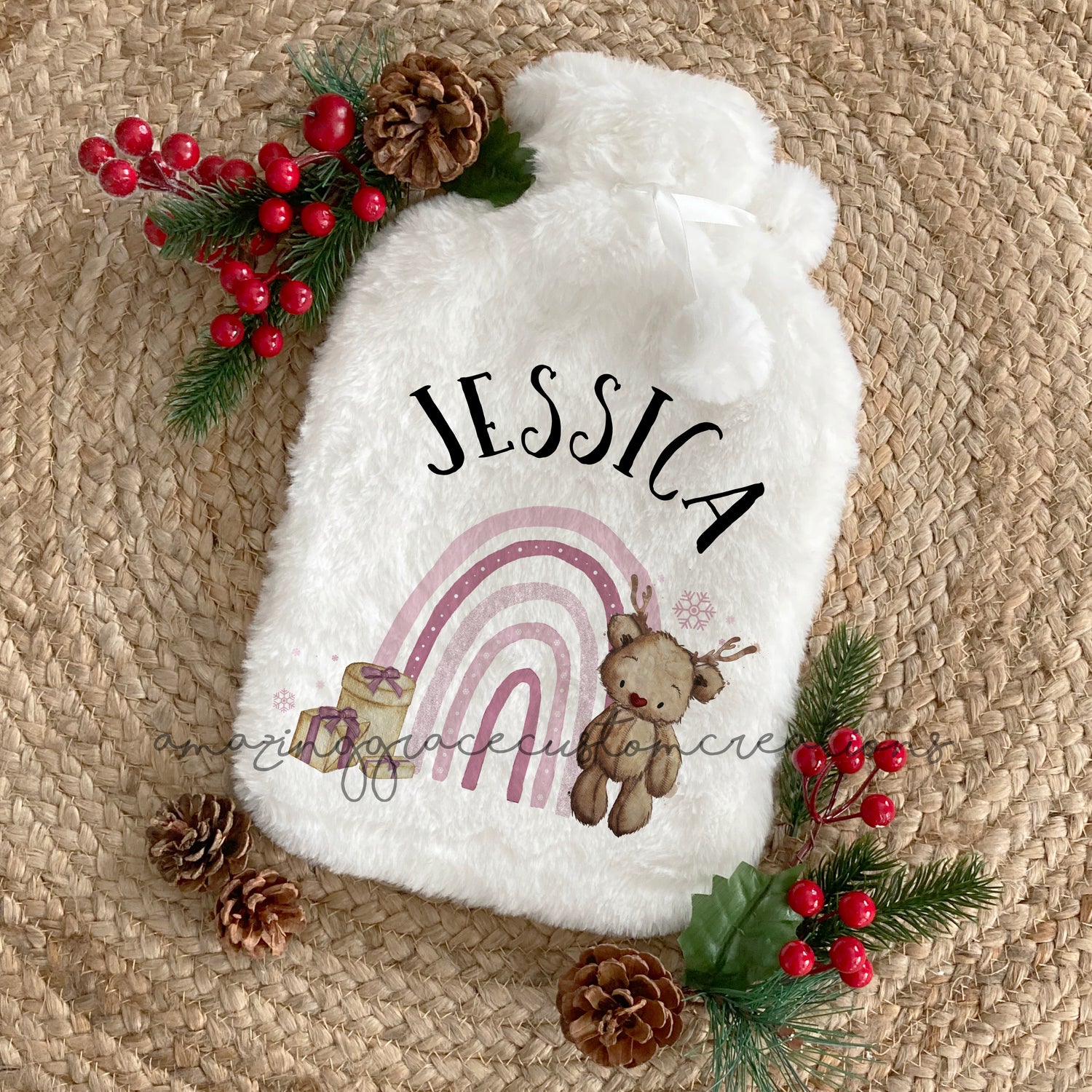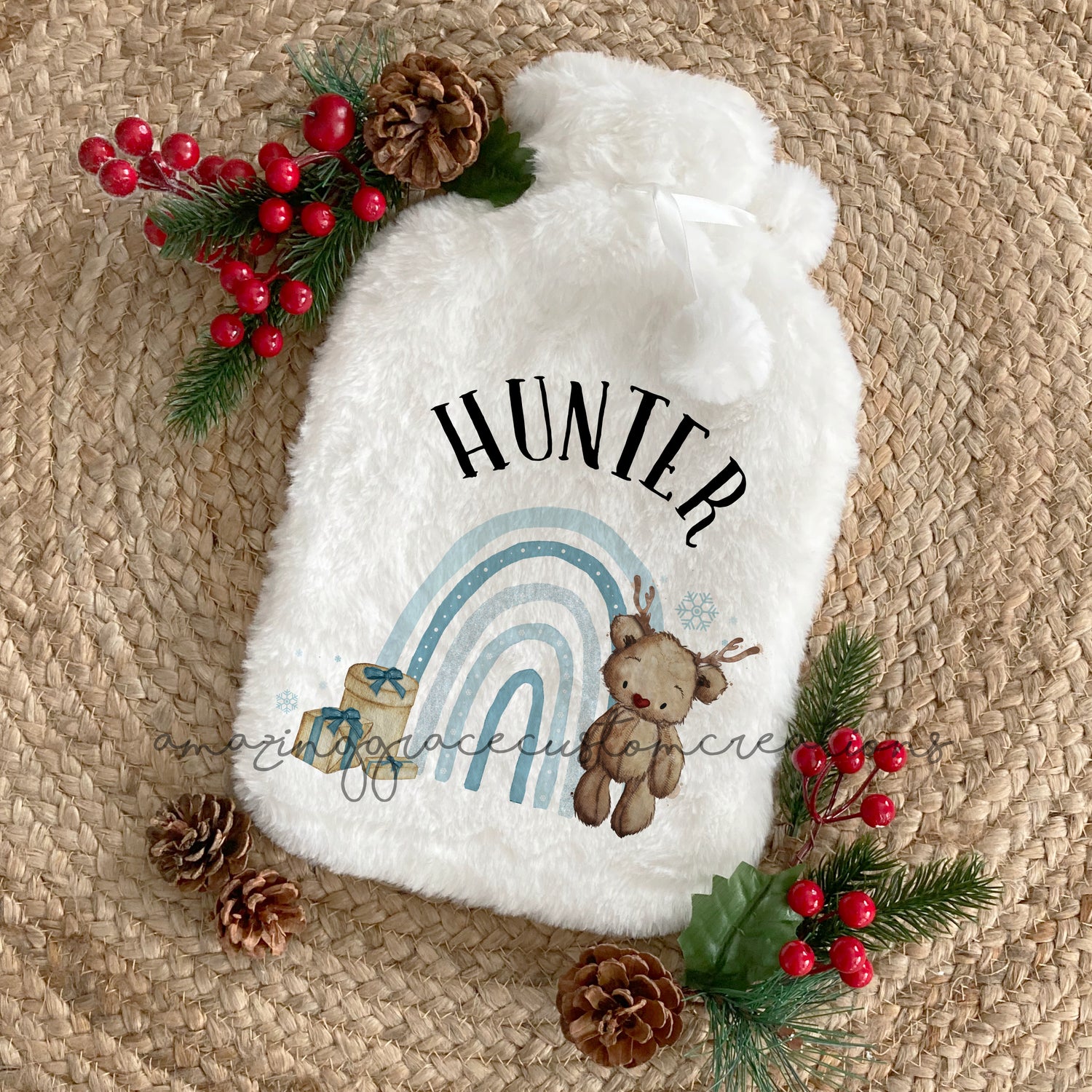 Hot water bottle with personalised plush cover - Christmas Bear