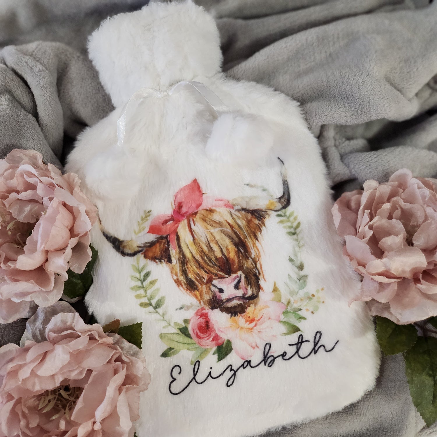 Super soft and High quality white plush personalised hot water bottle cover with 2L rubber bottle 100% natural rubber conforming to BS1970:2012