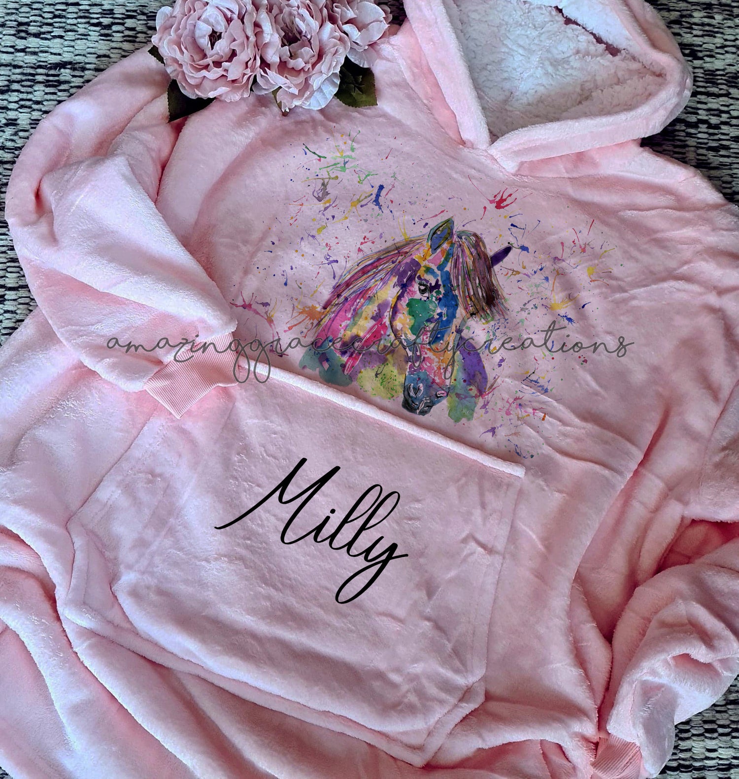KIDS & ADULTS Watercolour splash Horse theme snuggle hoody