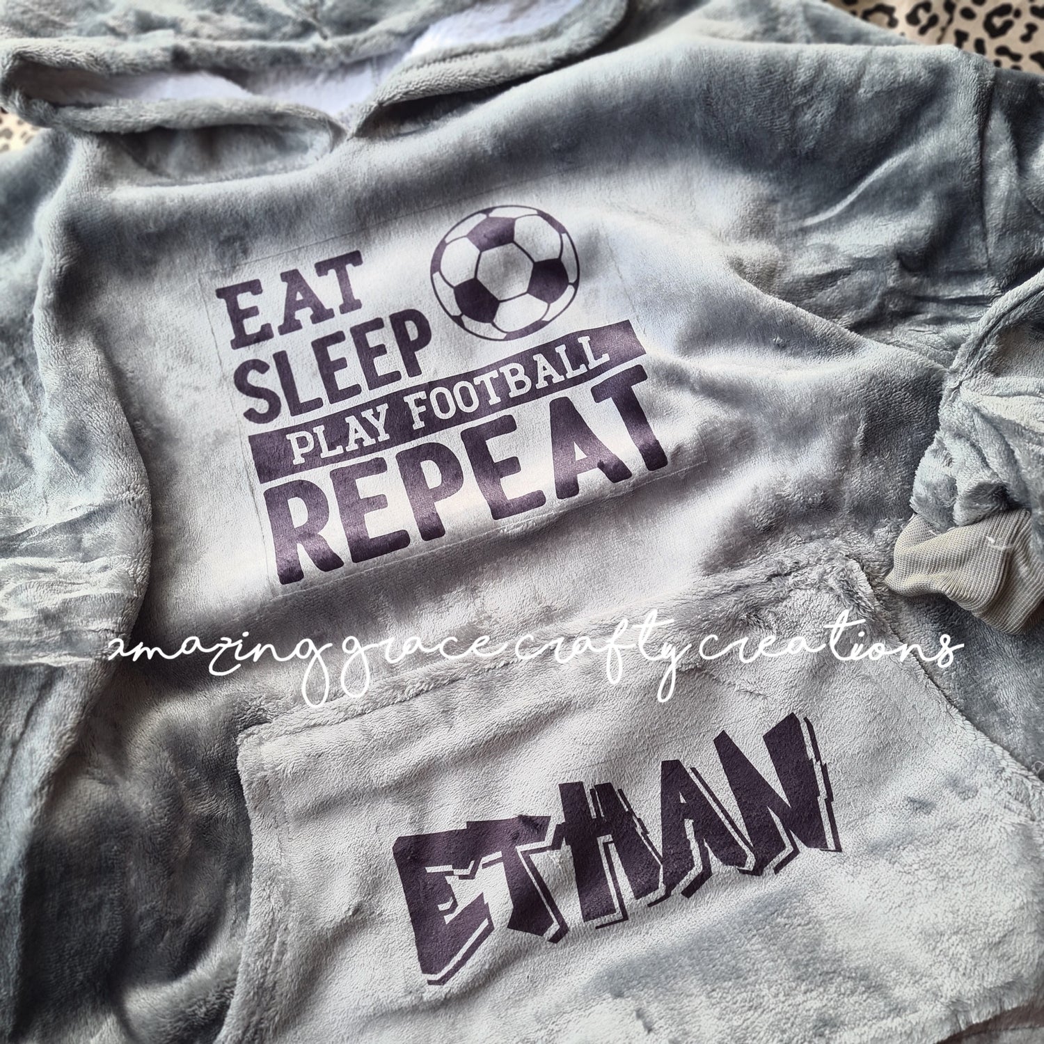 It's time to relax in style in our gorgeously soft oversize fleece snuggle hoodies, with sherpa fleece lining, cuffed sleeves and comfort pocket. Decorated with a football printed design along with optional name