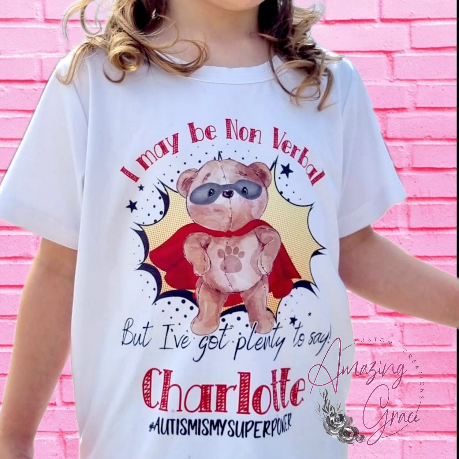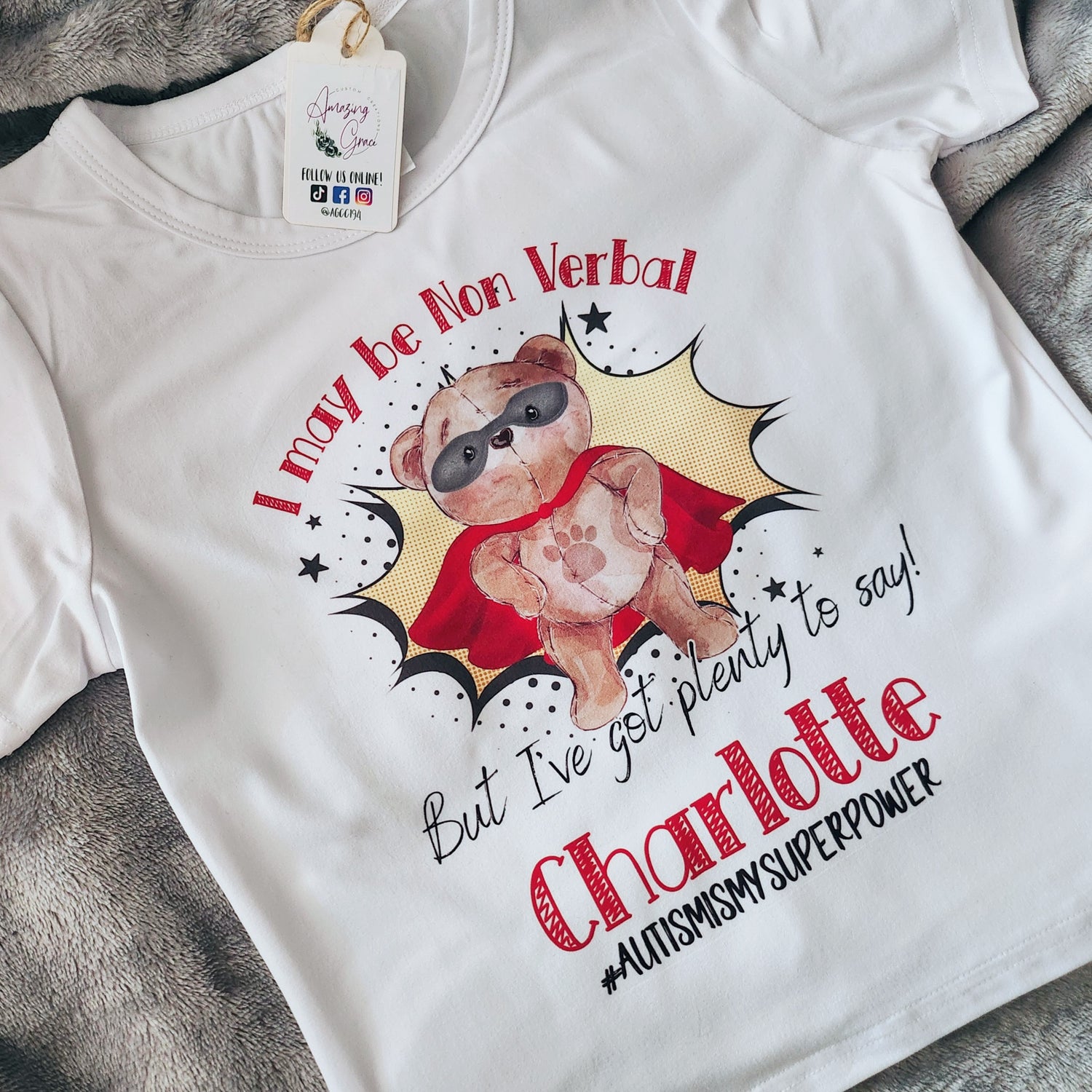 Rock your little ones super power in style ๐ with our gorgeous T-shirt with the cutest watercolour bear design personalised with your child's name.ย