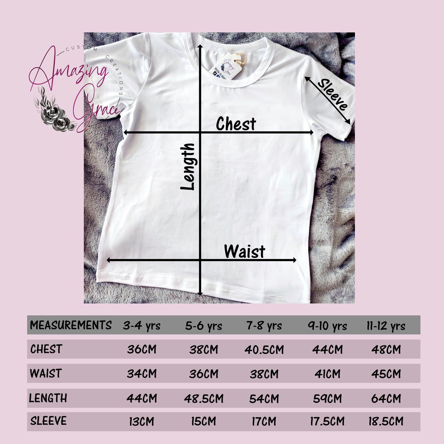 T-shirt 100% poly. Generous fit sizing, please see size chart