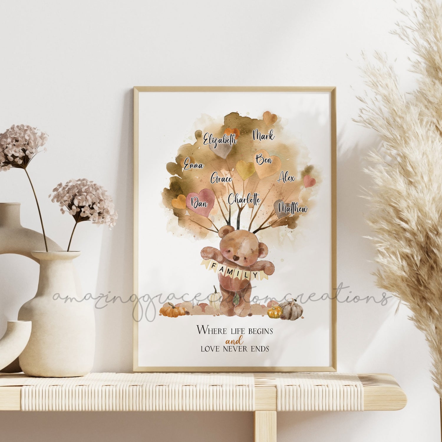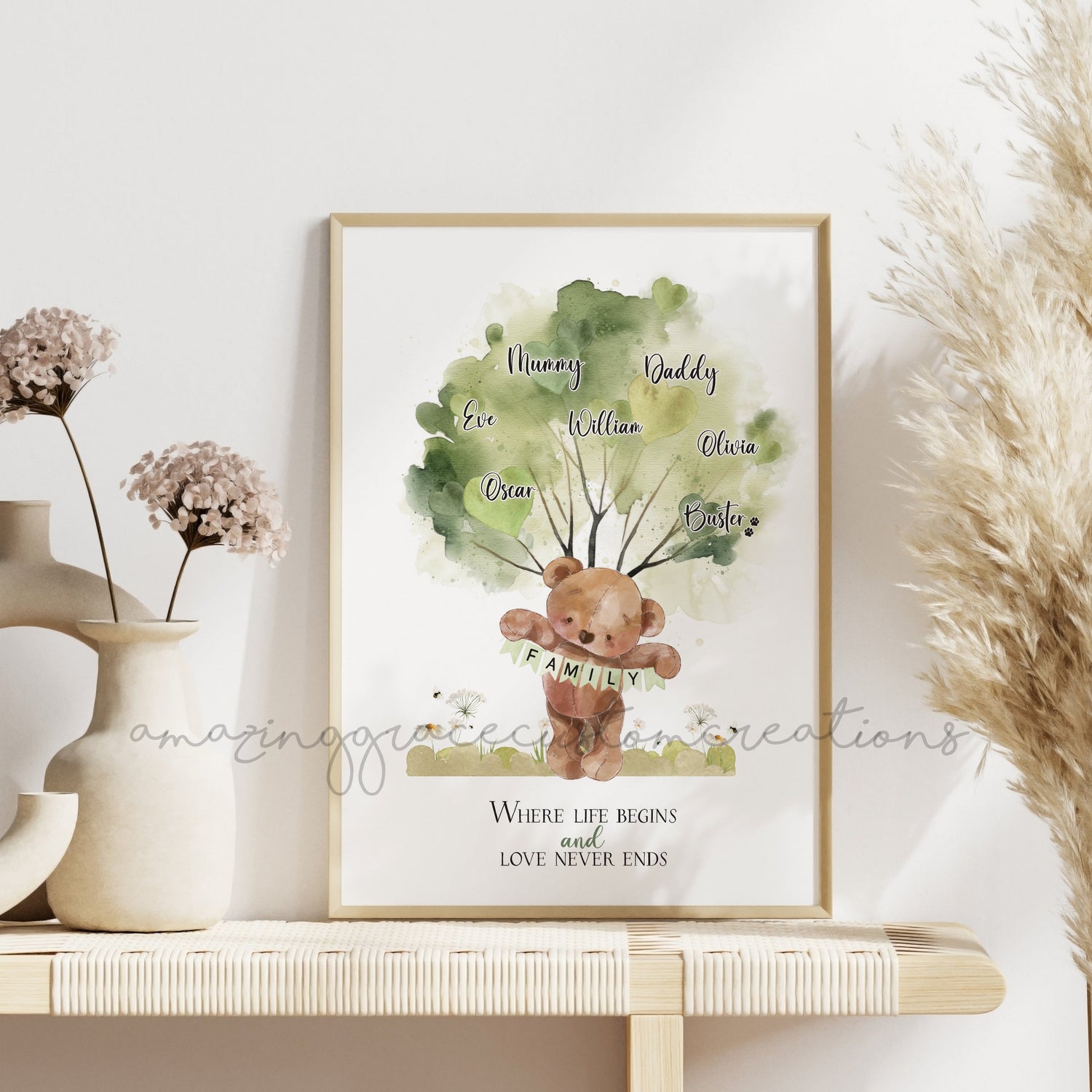 Personalised A4 Bear theme Family Tree print - 3 colour choices