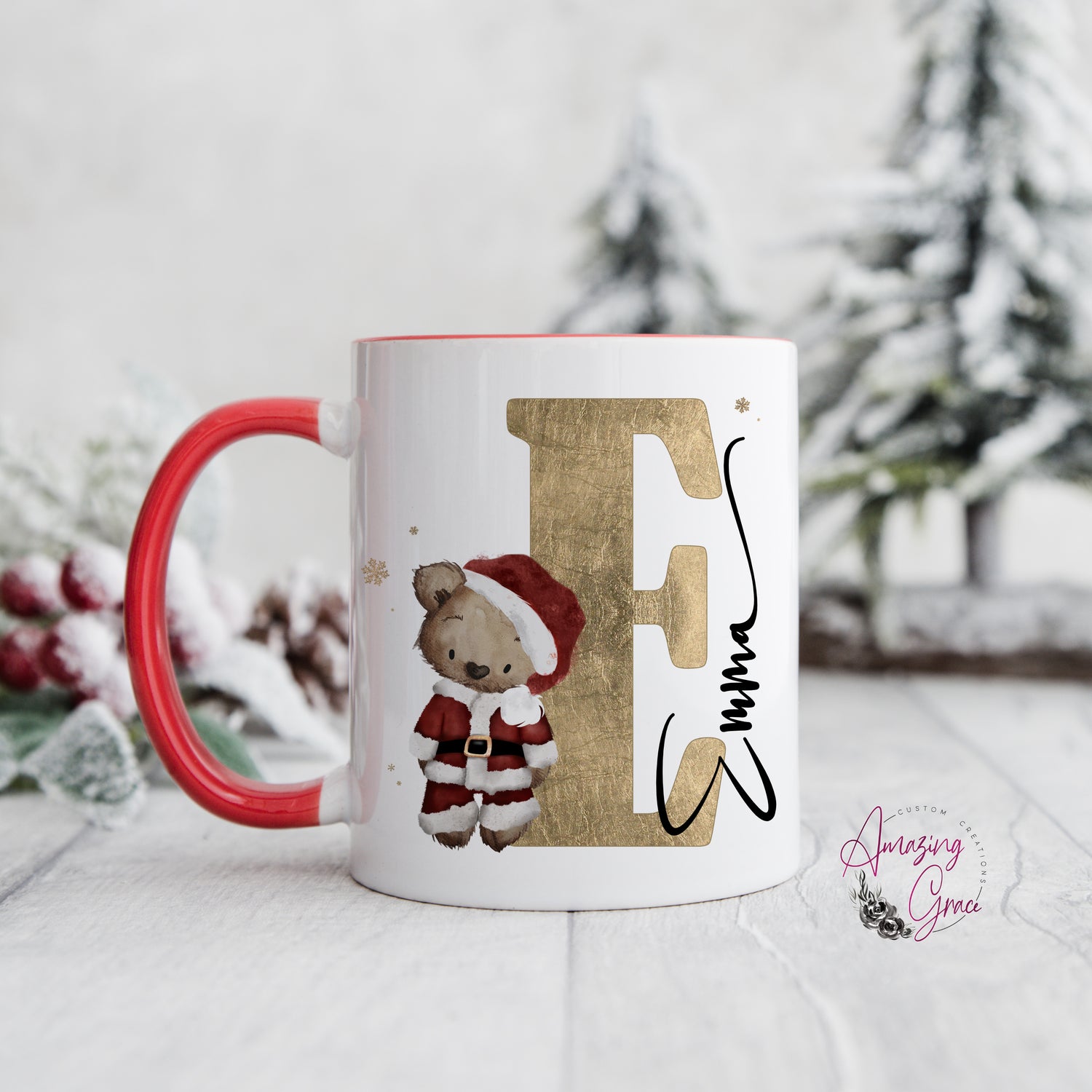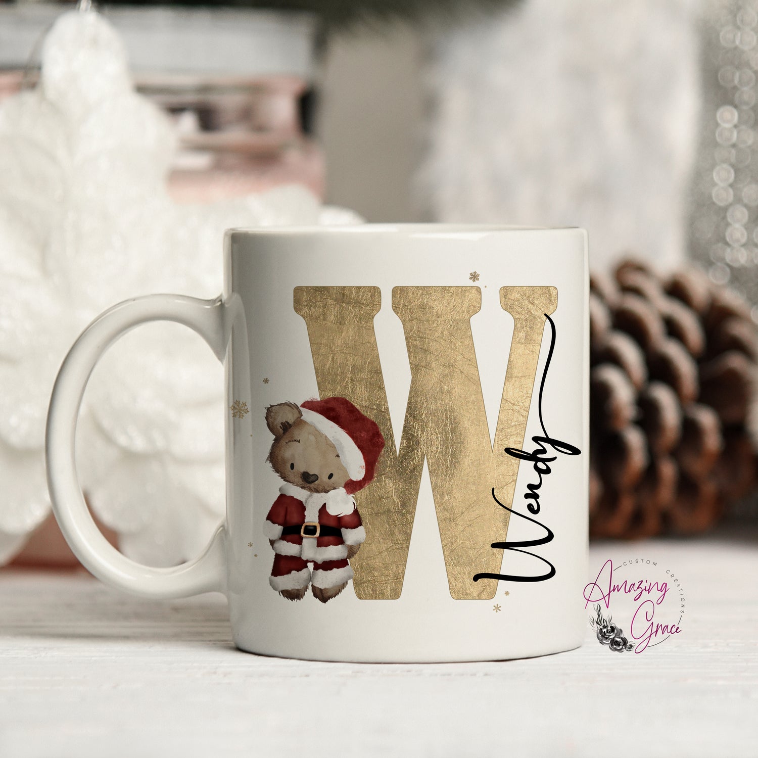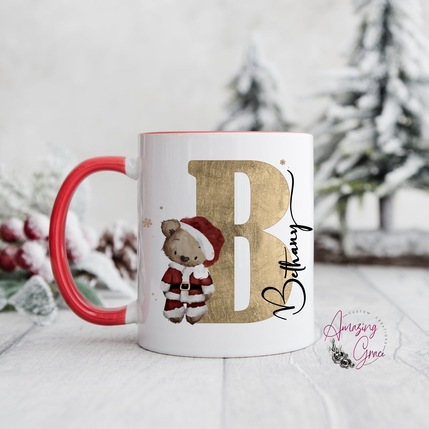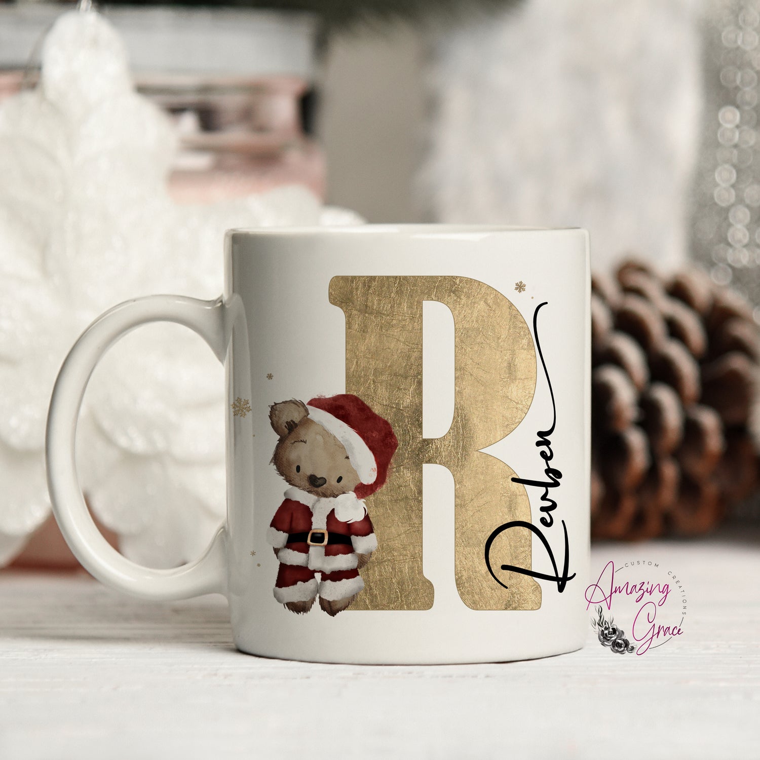 Personalised Christmas teddy initial mug