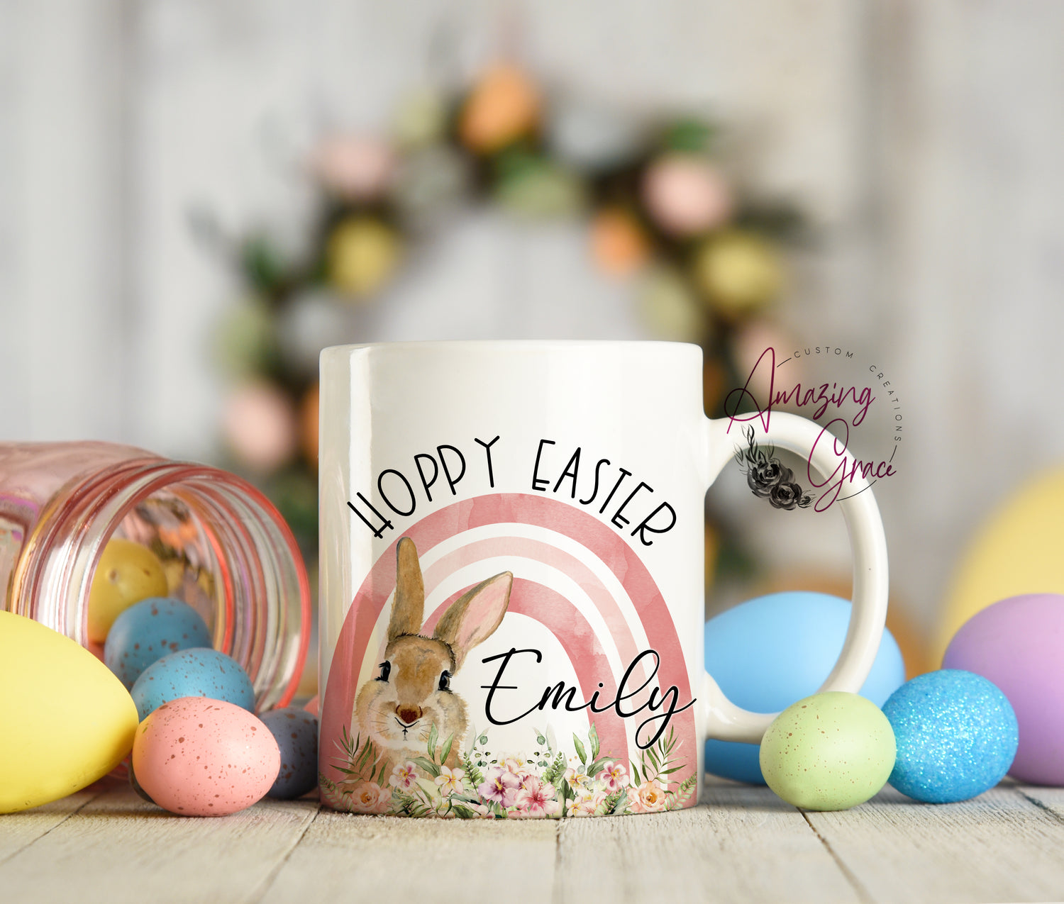 10oz Ceramic mug decorated with gorgeous Easter print & name