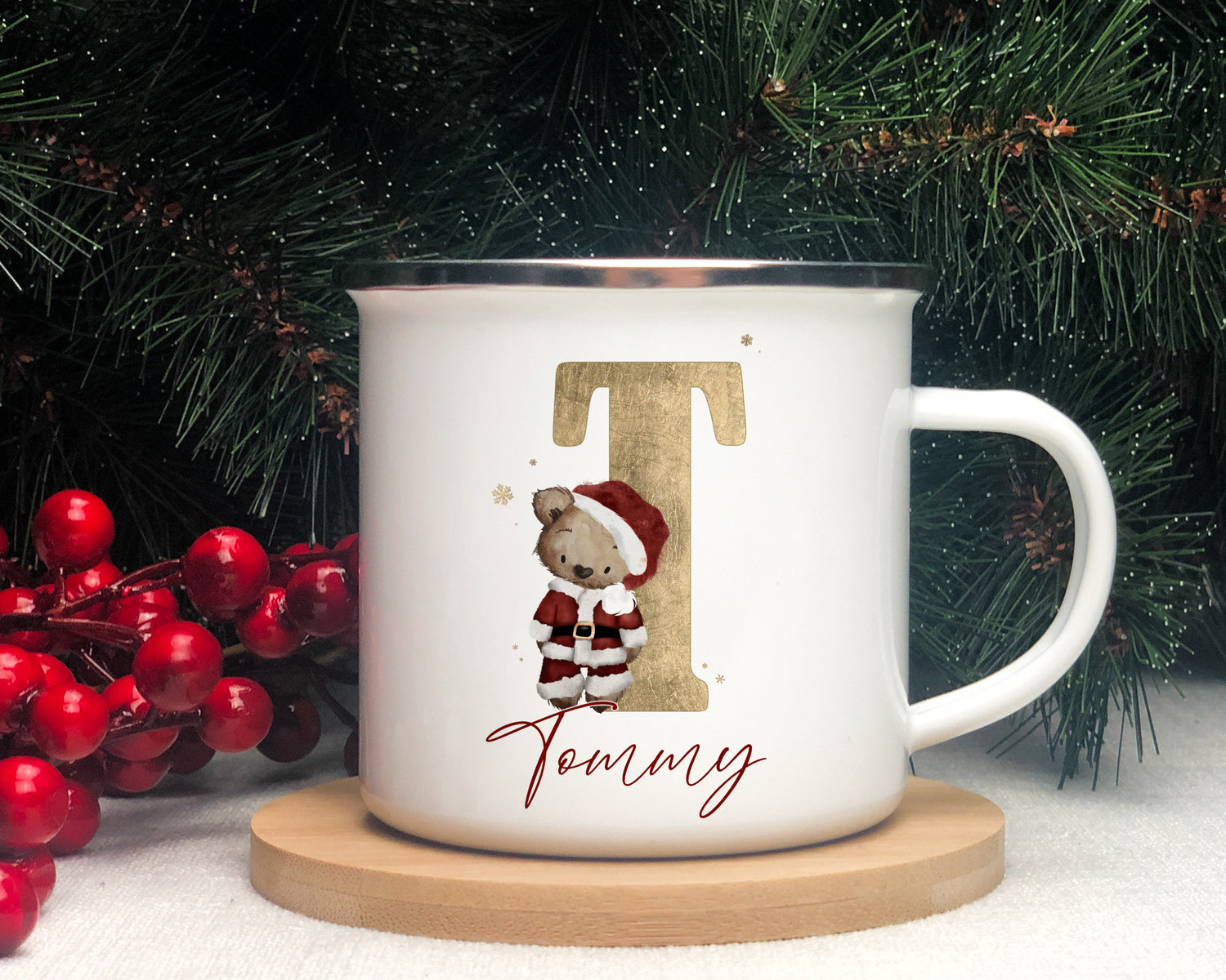 Personalised Enamel Christmas mug - TEDDY INITIAL