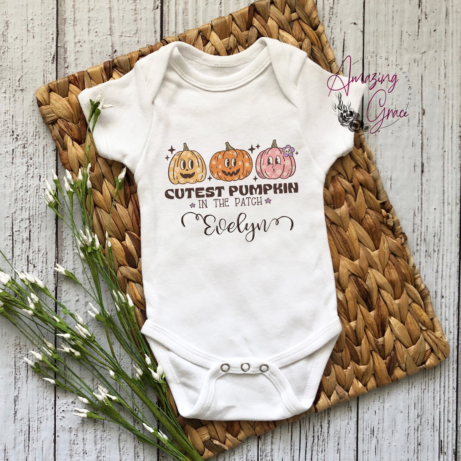 Personalised Halloween baby vest - cutest pumpkin