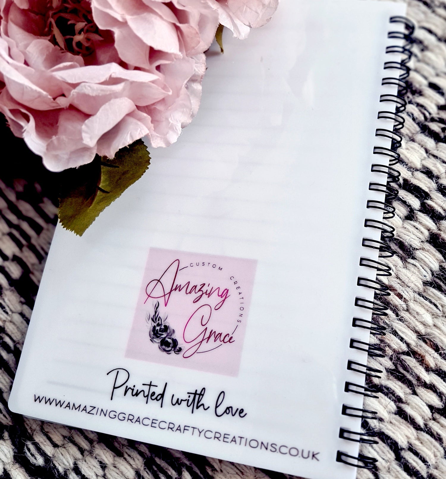 Super smart plastic cover A5 ruled notebook, hand printed with a vintage Santa design.