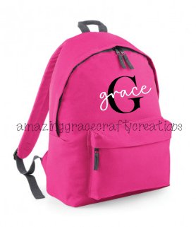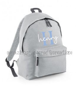 Kit out the kids in style with our new fashion backpacks! Introducing the smaller size backpack, ideal for nurseries and toddlers, these little siblings to our full size bags still have a great 12 litres capacity, and is personalised with your choice of name. To personalise, simply add the name you wish to display in the personalisation box, the 1st letter will be used as the large initial. Colours will be chosen to be a contrast to the bag unless you have previously stated.