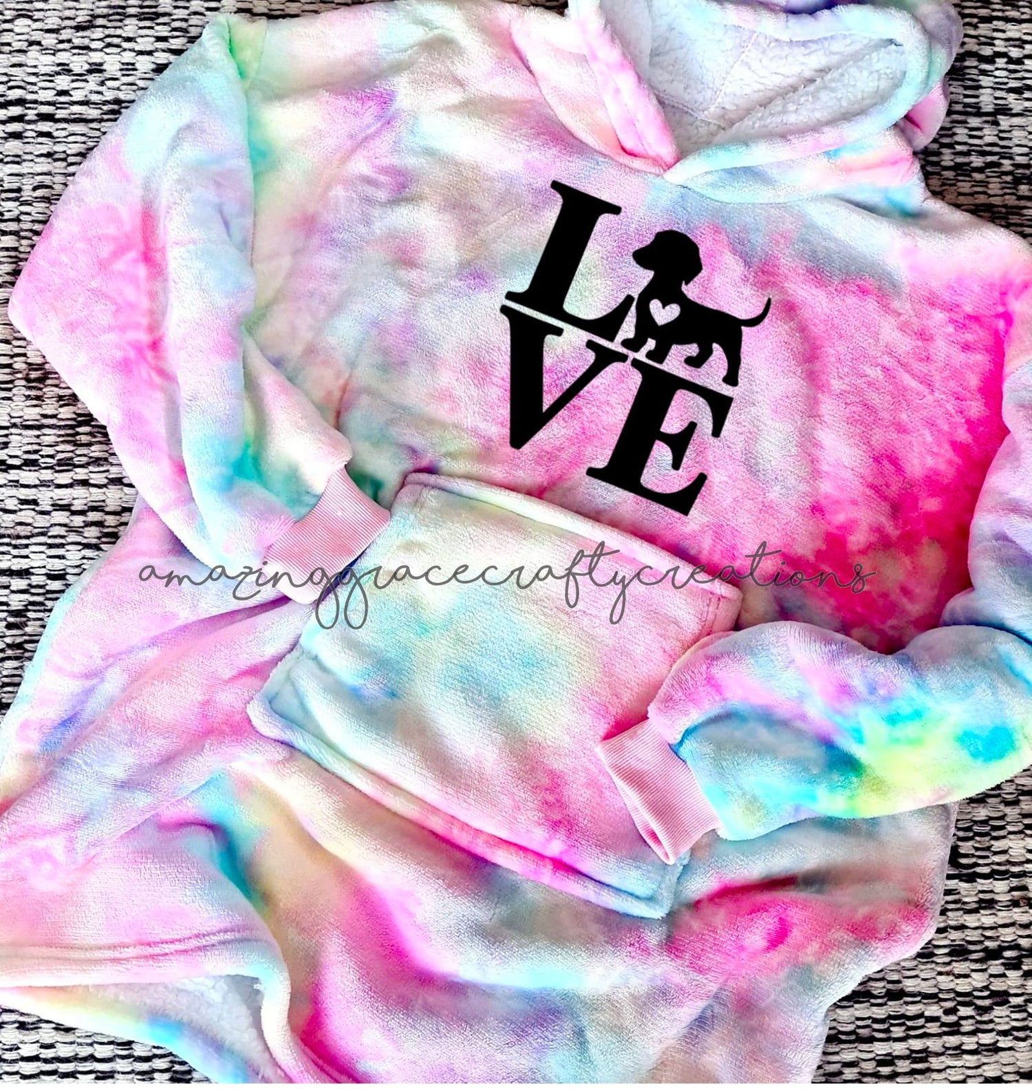 Special Edition Tie-Dye Dachshund theme snuggle hoody