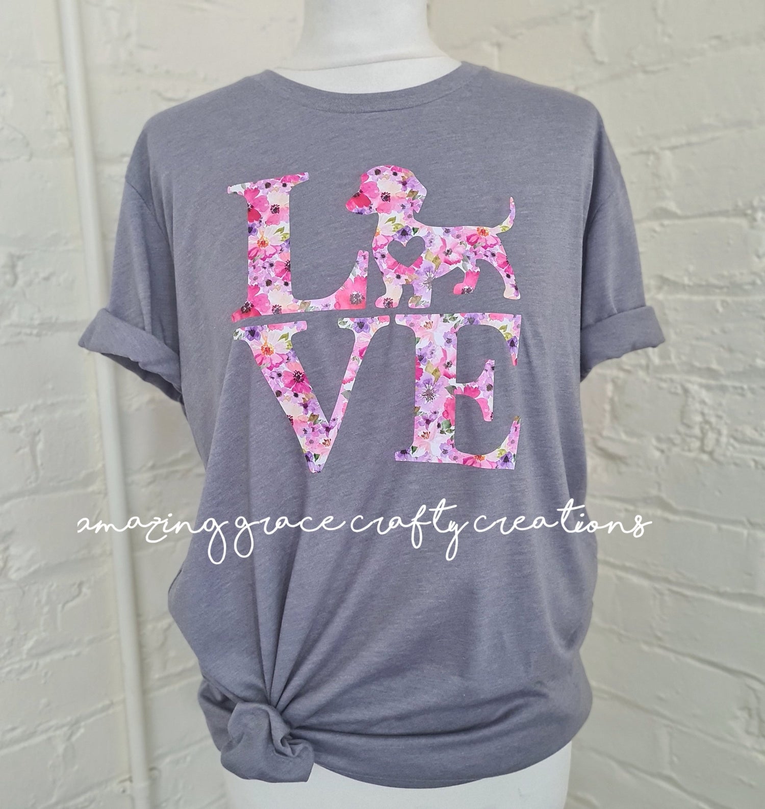 Comfy, Unisex fit Tshirt featuring gorgeous vinyl love sign featuring the dachshund within the design.
