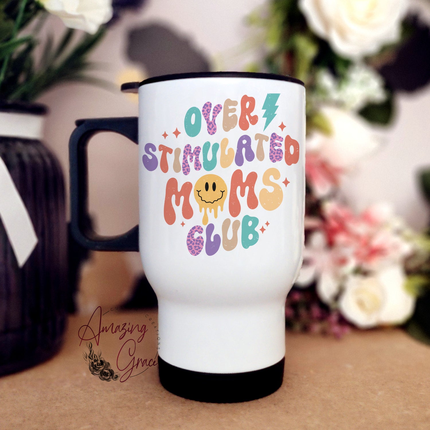 Travel Mug with handle/lid - Over Stimulated Mums Club