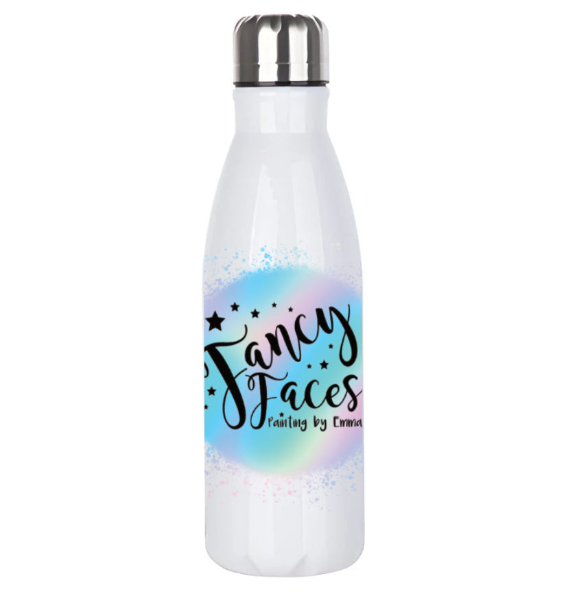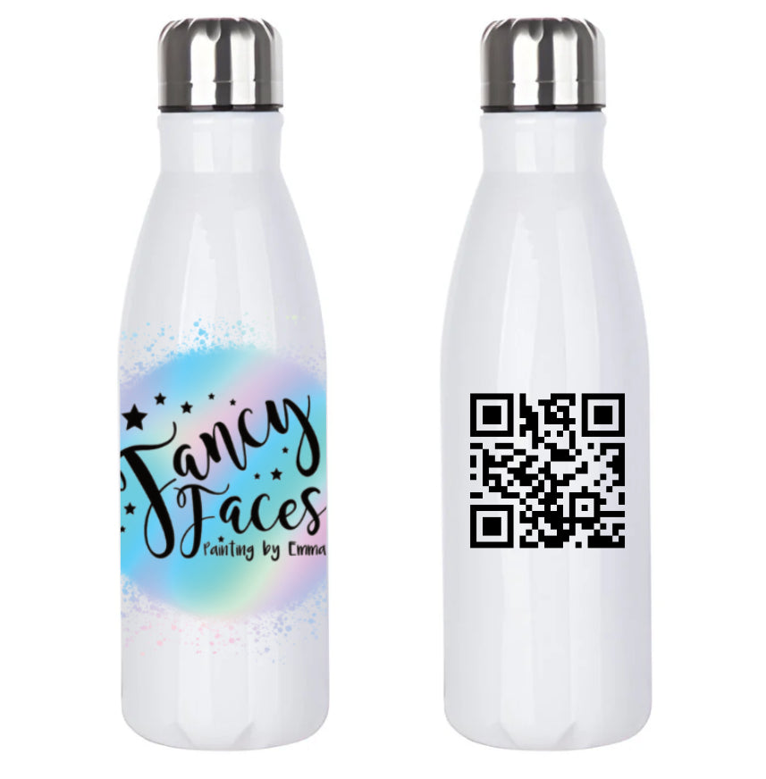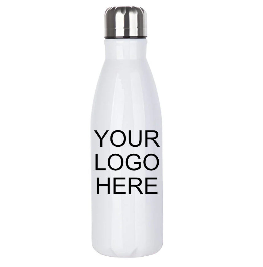 Glossy white finish, featuring your logo and any information you require (please upload a file for each side of the bottle)