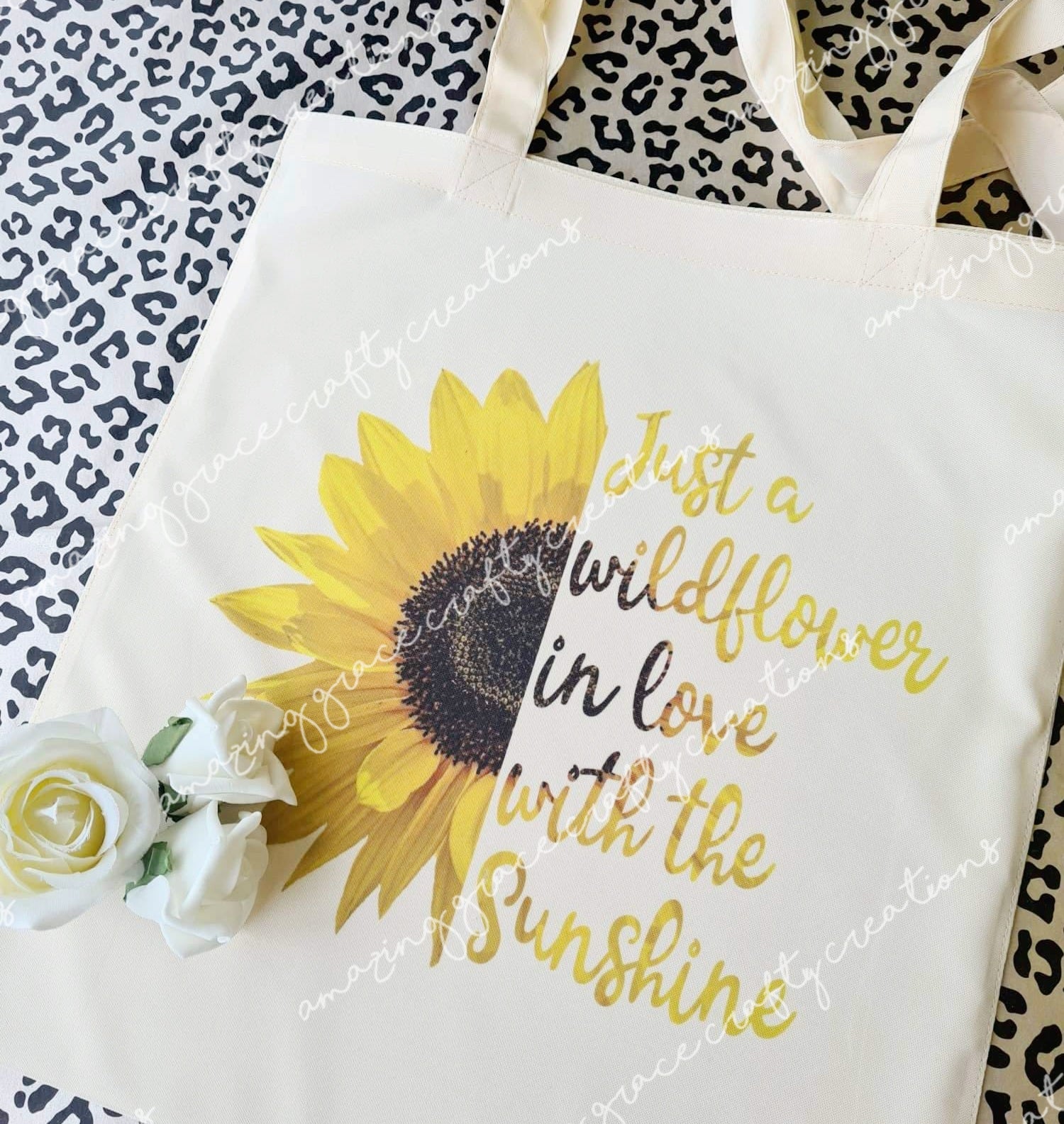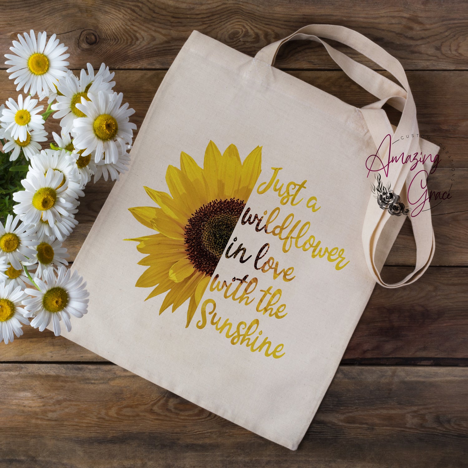 JUST A WILDFLOWER IN LOVE WITH THE SUNSHINE tote bag